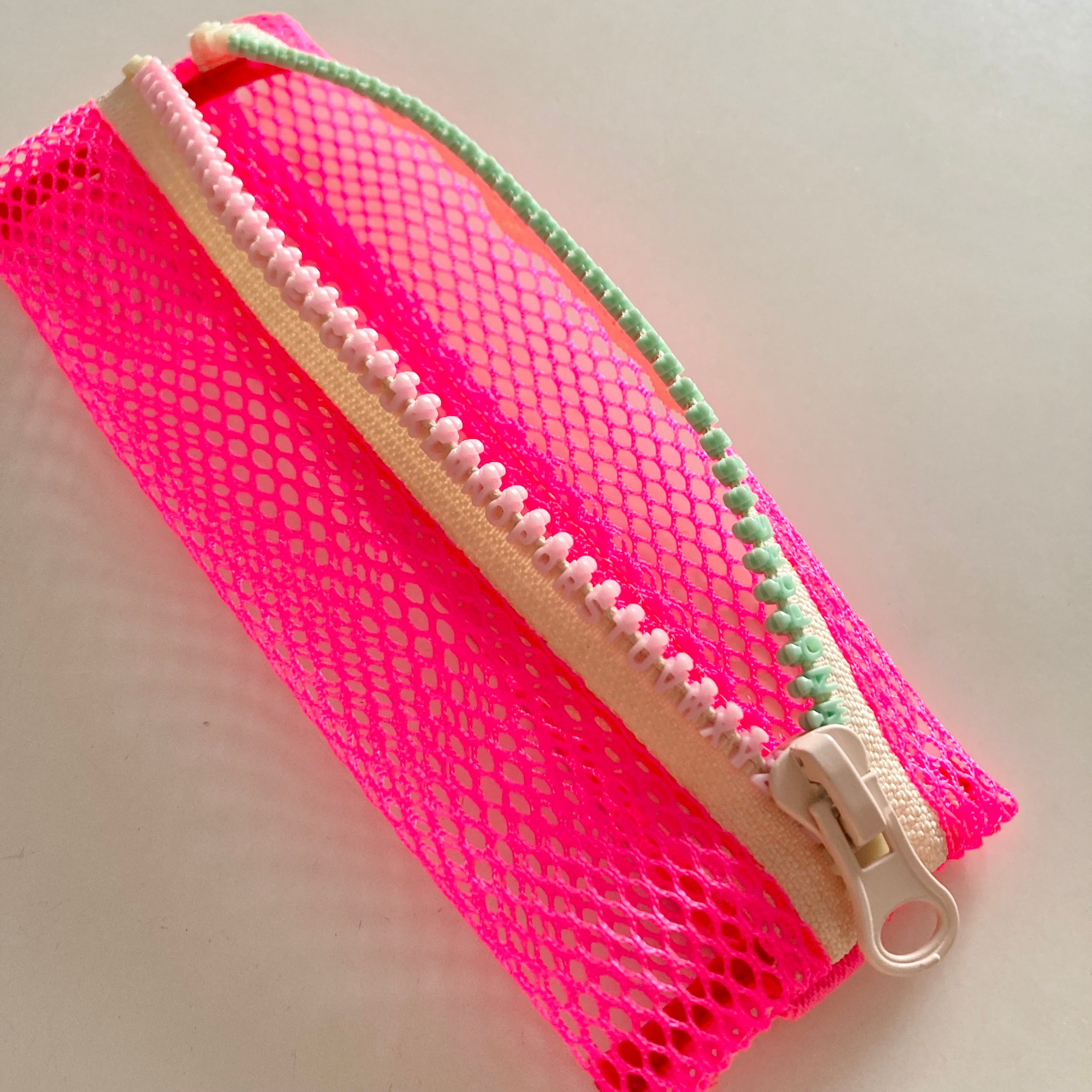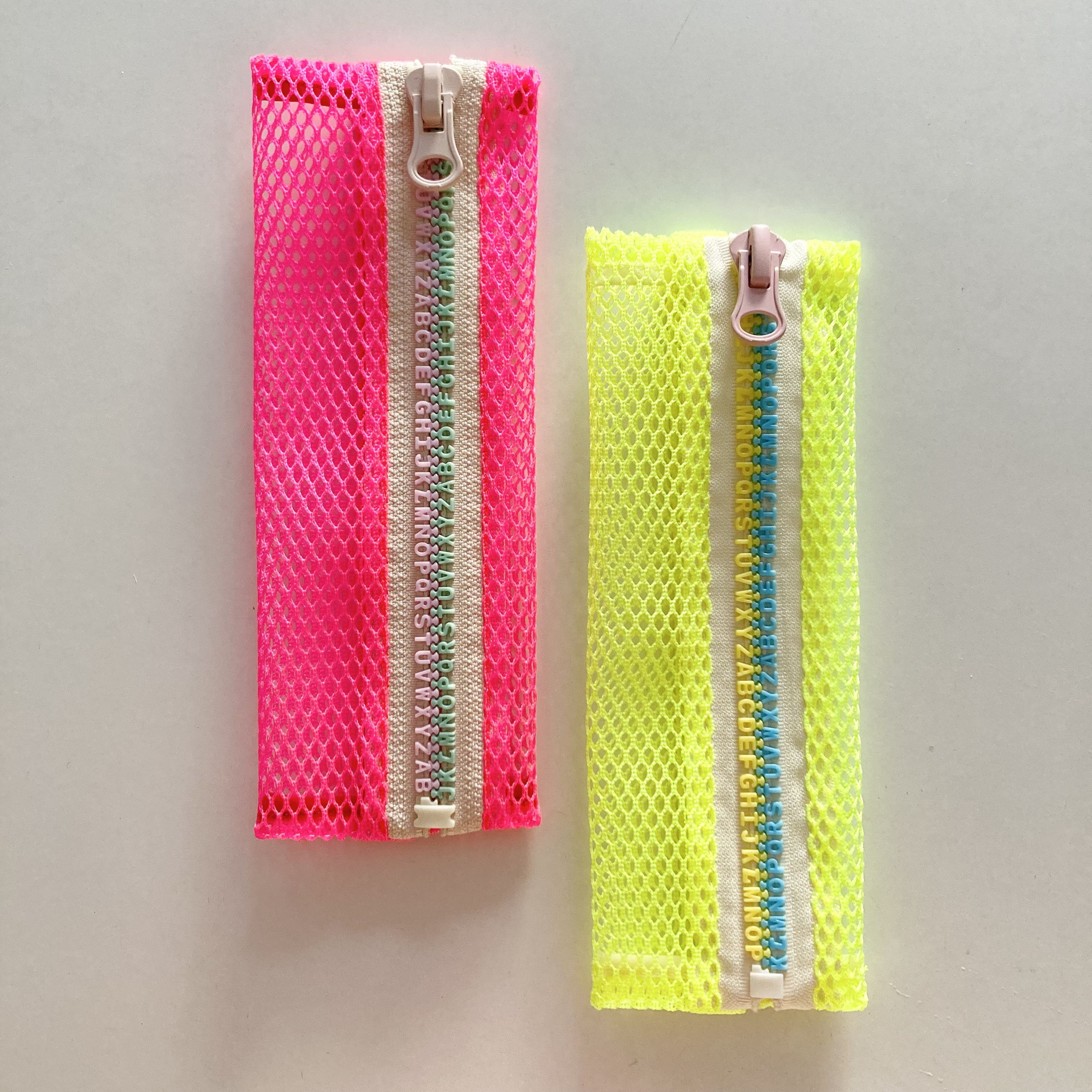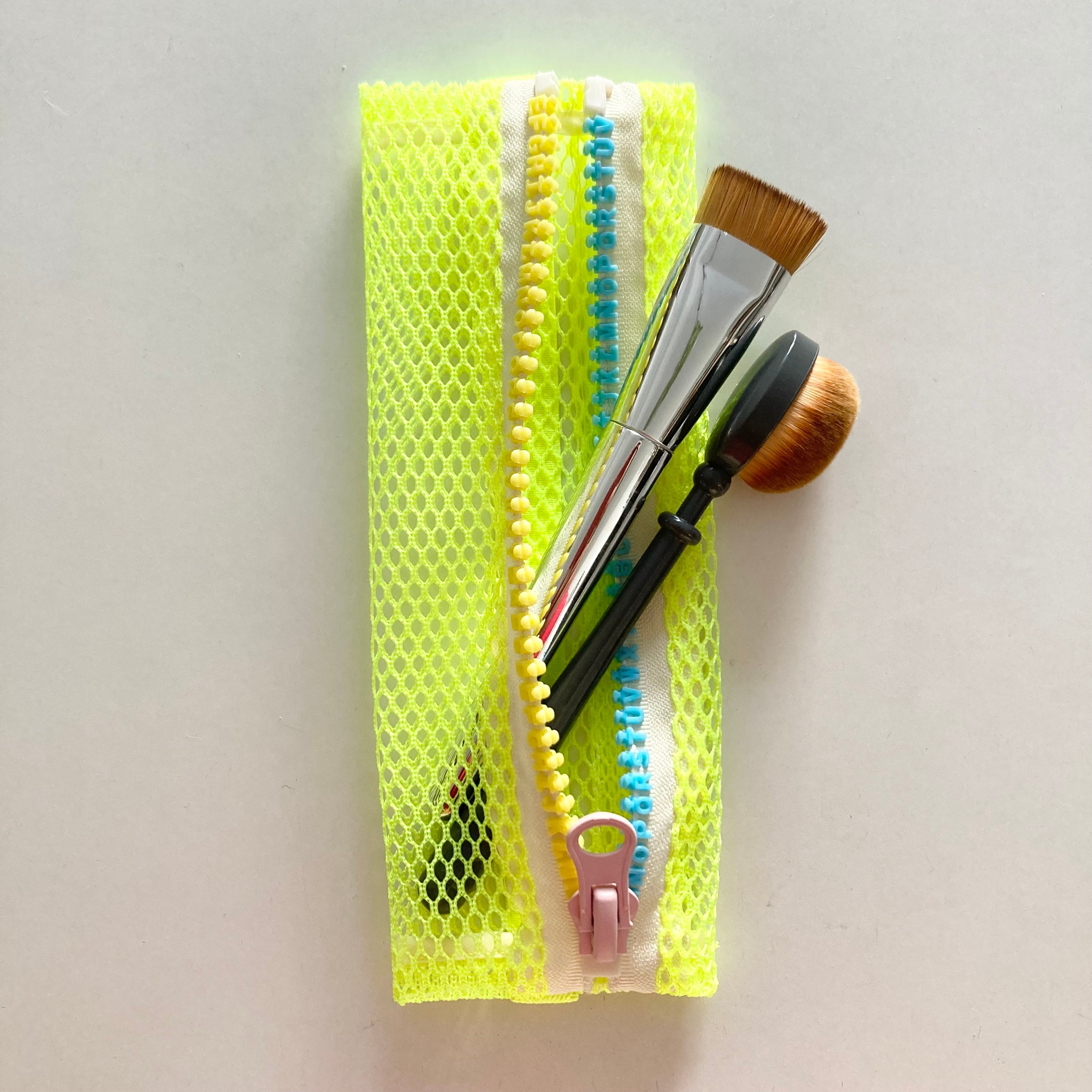 心浮き立つネオンカラーのメッシュ素材を使った軽量かつスリムなペンケース。