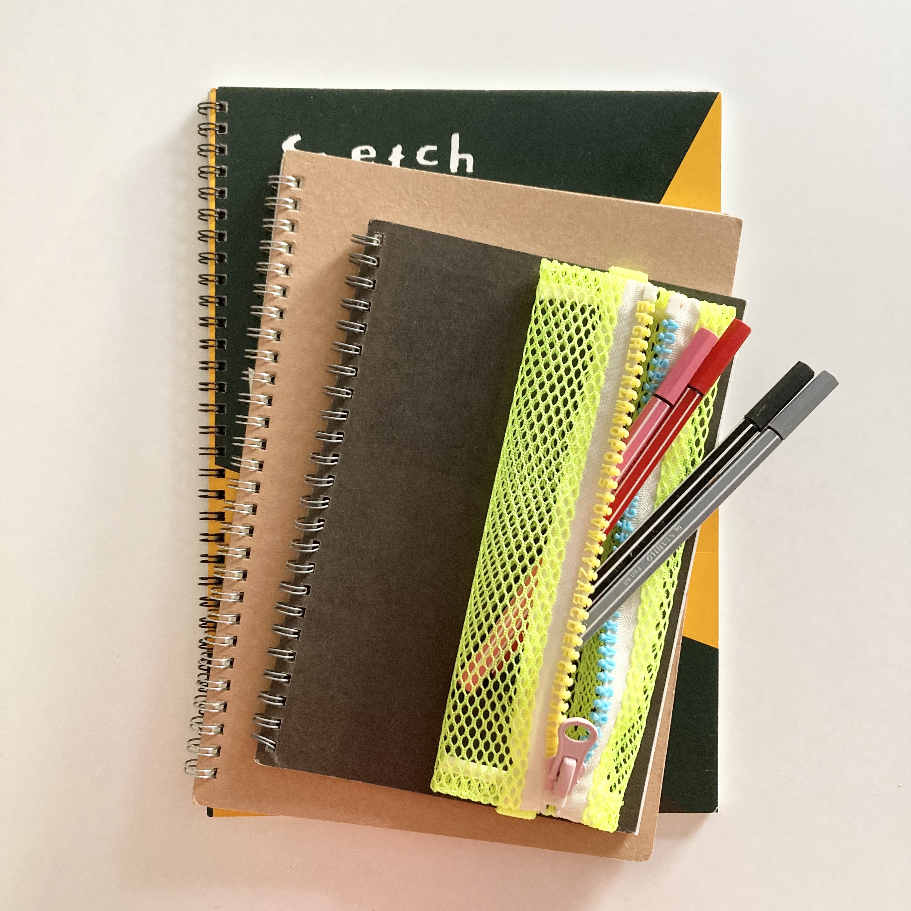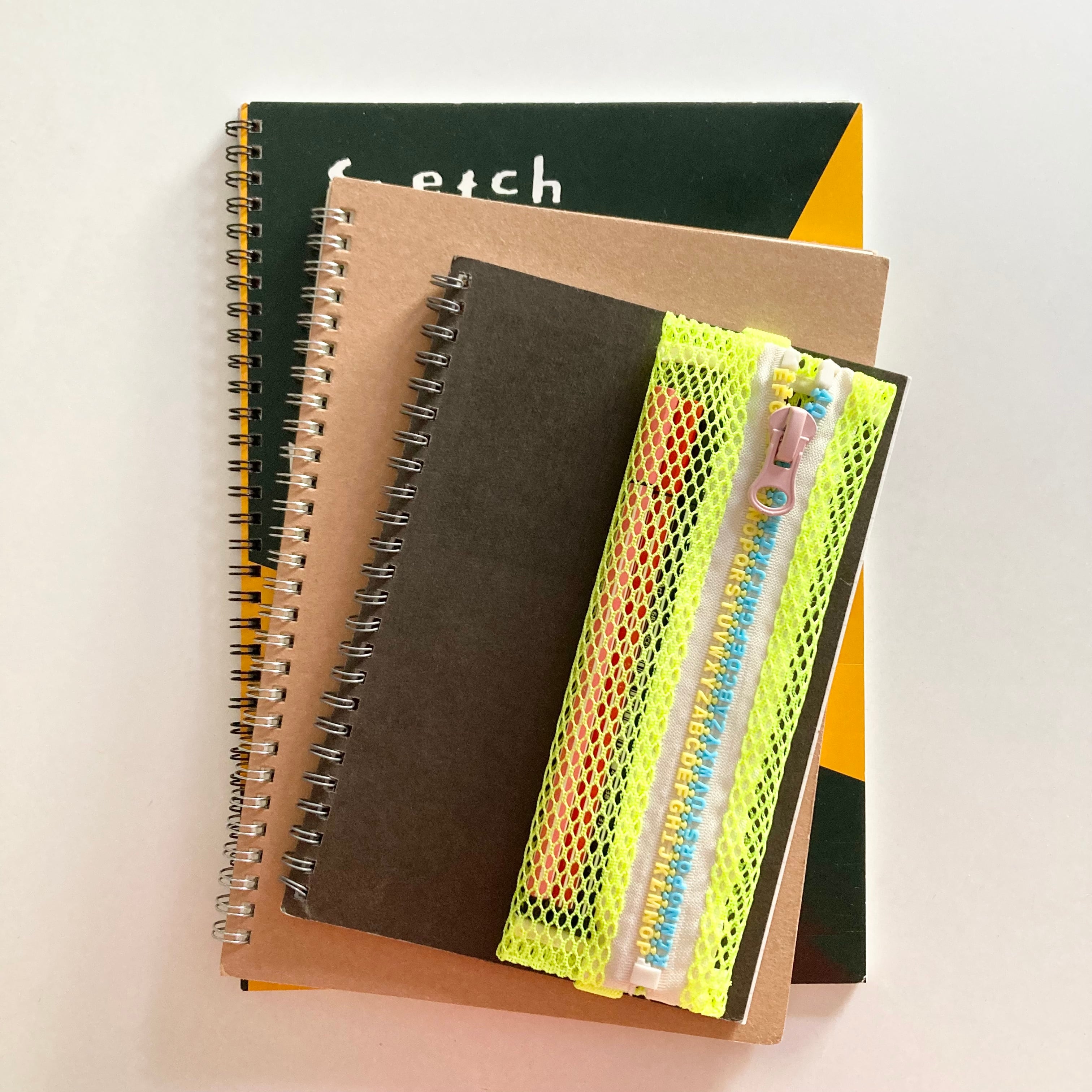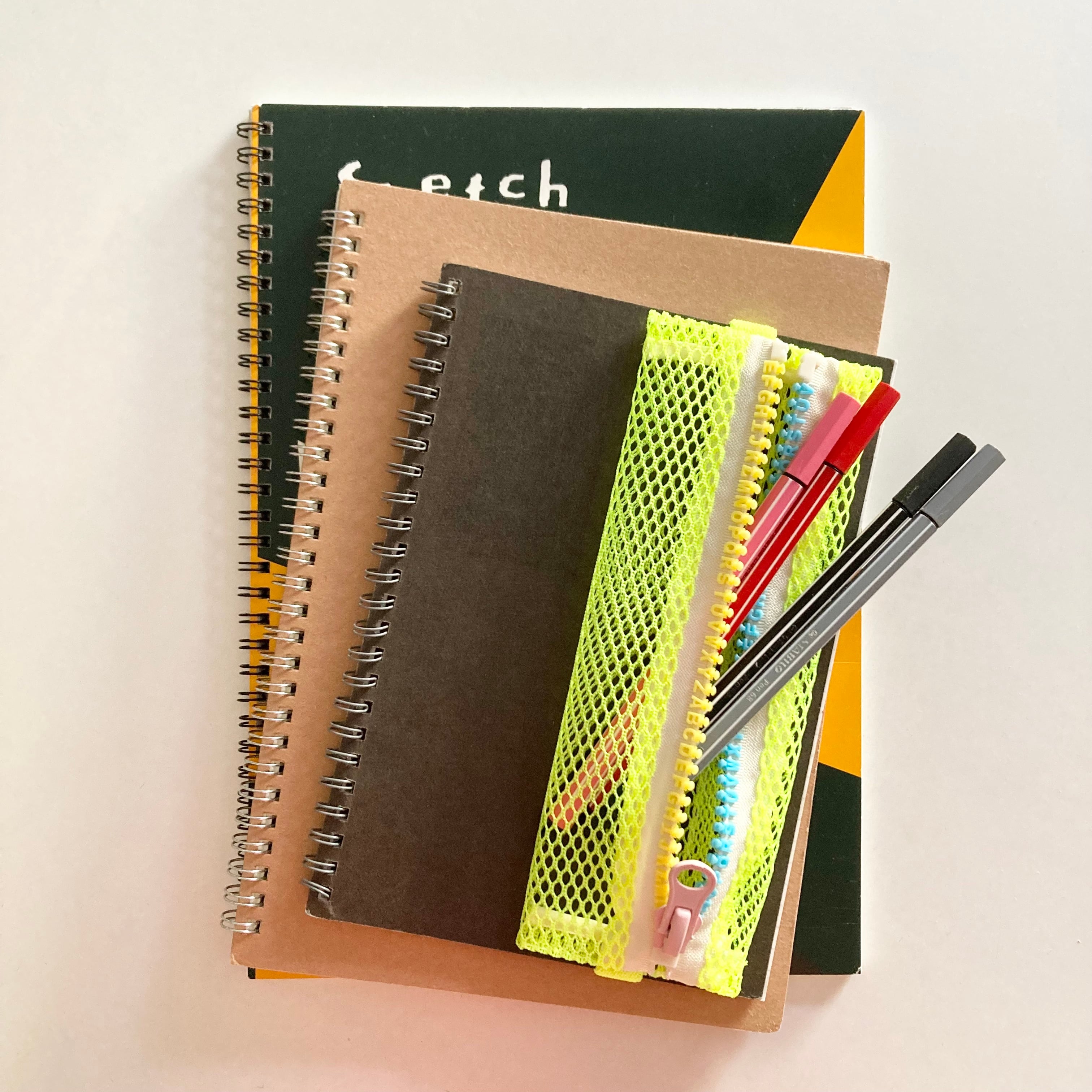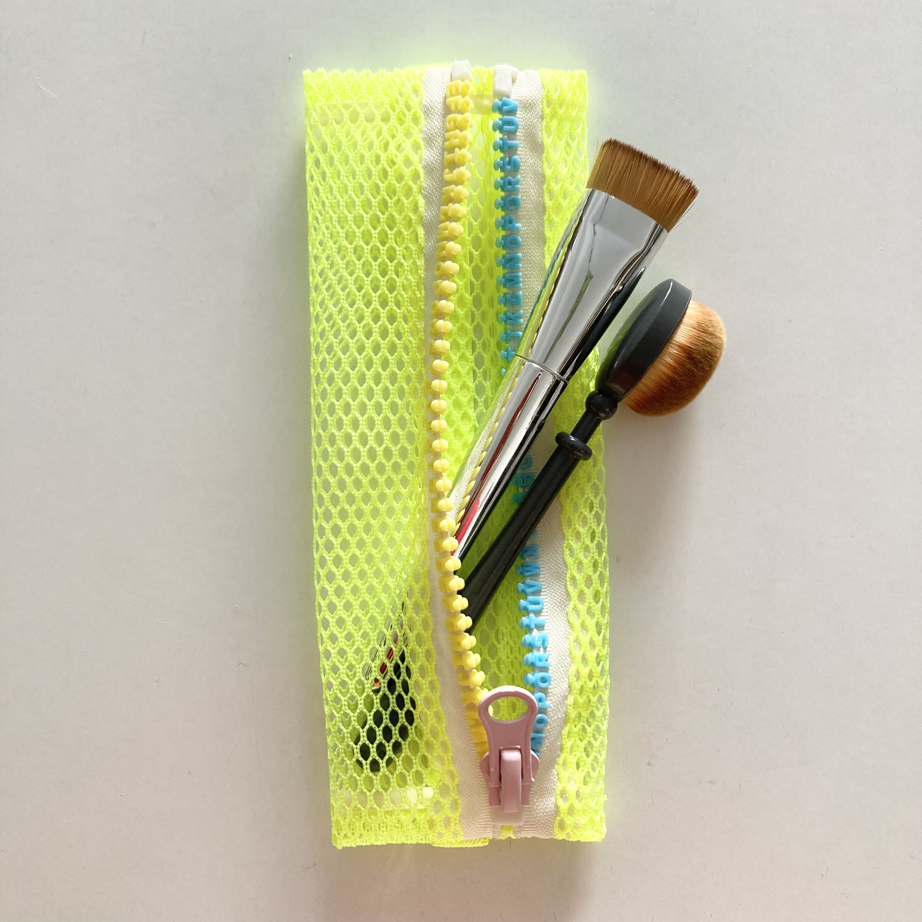 心浮き立つネオンカラーのメッシュ素材を使った軽量かつスリムなペンケース。