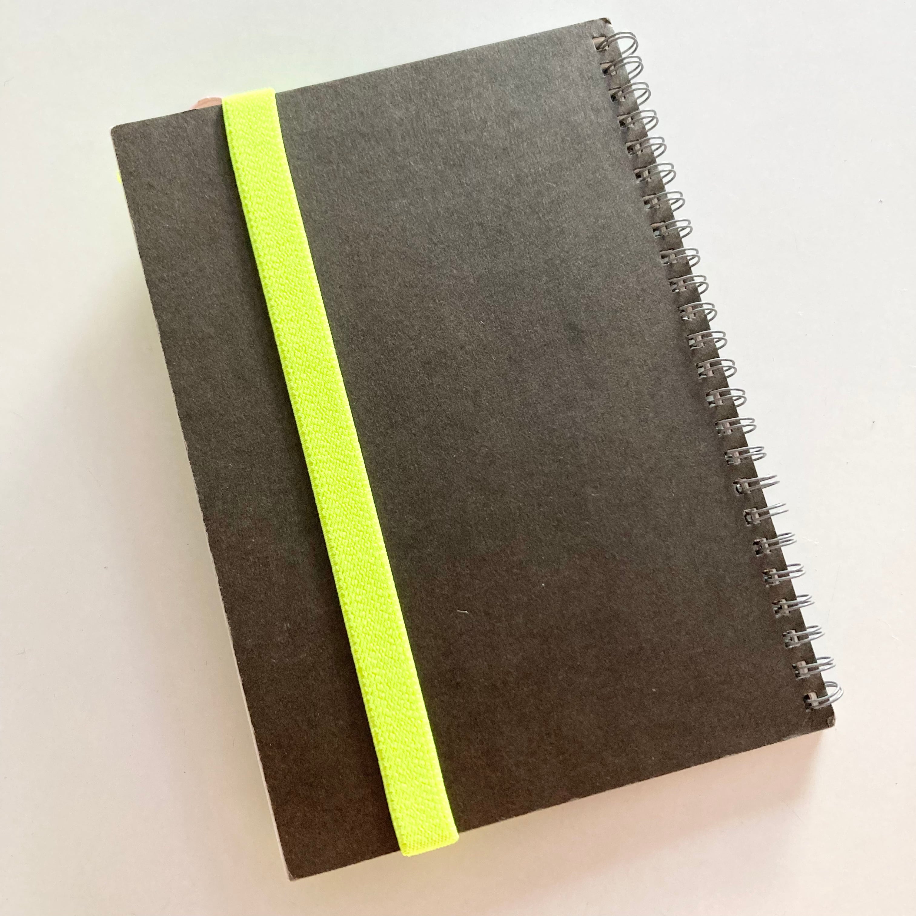 背面にA5サイズに対応できるゴムバンドがついていて、手帳やノートに装着できるのでブックバンドとしても便利です。